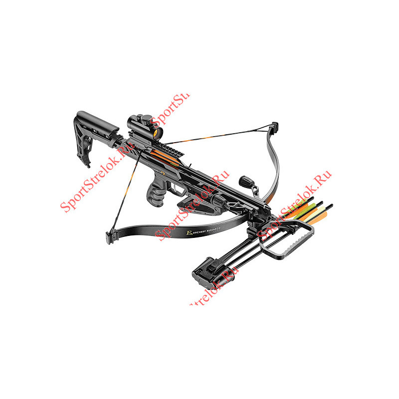 Комплектация: Коллиматорный прицел, парные виброгасители тетивы, стрингер, кивер на 3 стрелы, натяжитель, 3 алюминиевые стрелы 16".