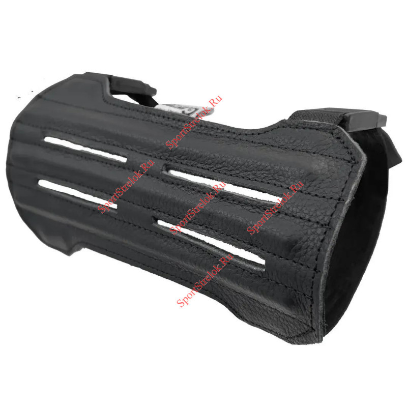 Крага изготовлена из натуральной высококачественной кожи. Внутренняя поверхность краги мягкая, что позволяет комфортно носить крагу на голой руке. Предусмотрены отверстия для вентиляции для ношения в помещениях и на улице в теплое время года. Крага дополнительно армирована гибкими пластиковыми ребрами жесткости, предотвращающими удар тетивой лука во время выстрела. Подходит для любого размера руки.