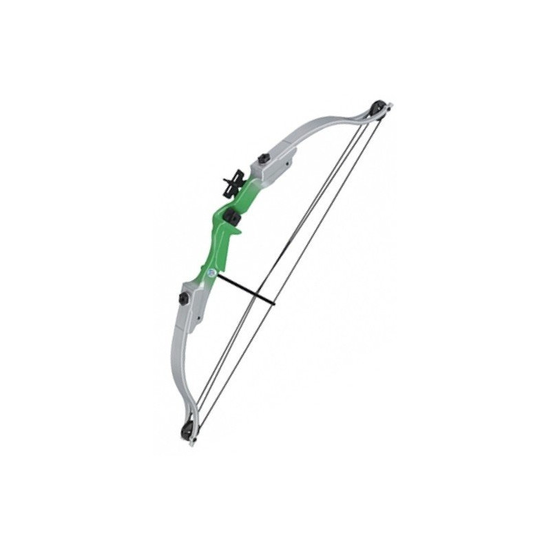 Простой легкий блочный лук для подростков среднего школьного возраста. Состав лука: легкосплавная алюминиевая рукоять, тетива из высокопрочной полимерной нити, регулируемая мушка. Пиковое усилие дуг 12 кг. Рекомендуется для отдыха и развлечения. В комплекте с луком идет регулируемый прицел, полочка, крага и напалечник подростковых размеров, а также две стрелы.