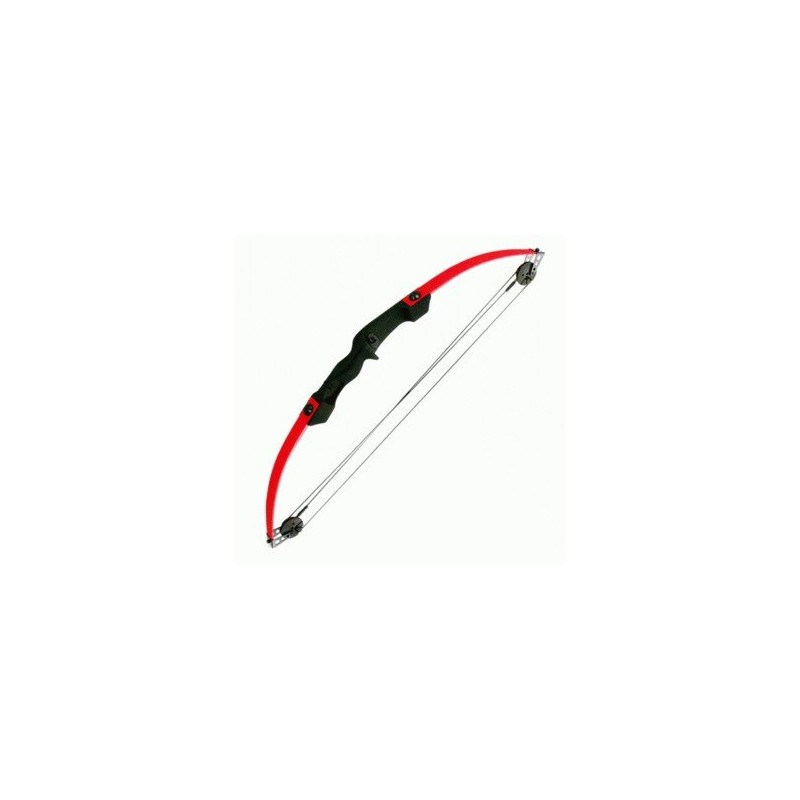 Блочный детский лук красного цвета с максимальным усилием натяжения 11,35 кг. Благодаря блочной системе взвода, лук легко удерживать в натянутом состоянии, что позволяет добиваться значительно лучших результатах в стрельбе. В стандартный комплект с луком входит две деревянные стрелы с травмабезопасными наконечниками, колчан, зашита запястья и мишень.