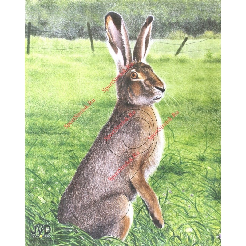 Мишень JVD - Заяц прекрасно подойдет для начинающих охотников и людей, которым надоело стрелять по стандартным мишеням. На мишени отмечены все зоны, в которые необходимо попадать зайцу, для того чтобы нанести ему максимум повреждений. Мишень JVD отличается от простой бумажной тем, что у нее имеется слой нейлоновой нити внутри. Благодаря такой конструкции мишень JVD прослужит Вам намного дольше, чем обычная бумажная. Мишень имеет размер 45смх53см.
