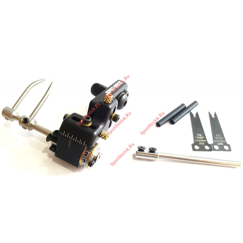 В первом варианте для Спортивной стрельбы используется особый вал с фиксирующимся к нему Лаунчером, в зависимости от веса стрелы можно использовать одну из Пластин подходящих для используемых стрел.
