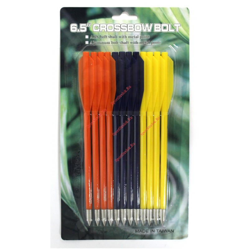 Перья стрелы для арбалета имеют традиционную форму, что позволяет использовать дротики со всеми популярными моделями арбалетов пистолетного типа. В комплекте включены 12 стрел.